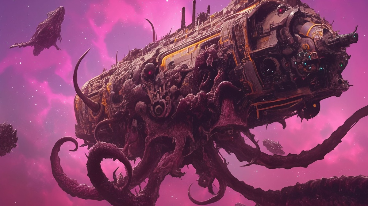 Создано на основе запроса: skull lovecraftian, lovecraftpunk, metal tentacles, horror, brainiac, brainiac ship, in space, octane render, warhammer latent spaceships --- Автоперевод: Череп Лавкрафт, Лавкрафт Панк, металлические щупальца, ужас, Брейньяк, Брейньяк корабль, в космосе, октановый рендер, латентные космические кораблих Как тебе такая картинка? 🤔 https://dzen.ru/id/65c0c65c86e4f837c27b24d7 #ИИ #AI #нейросеть #midjourney #art