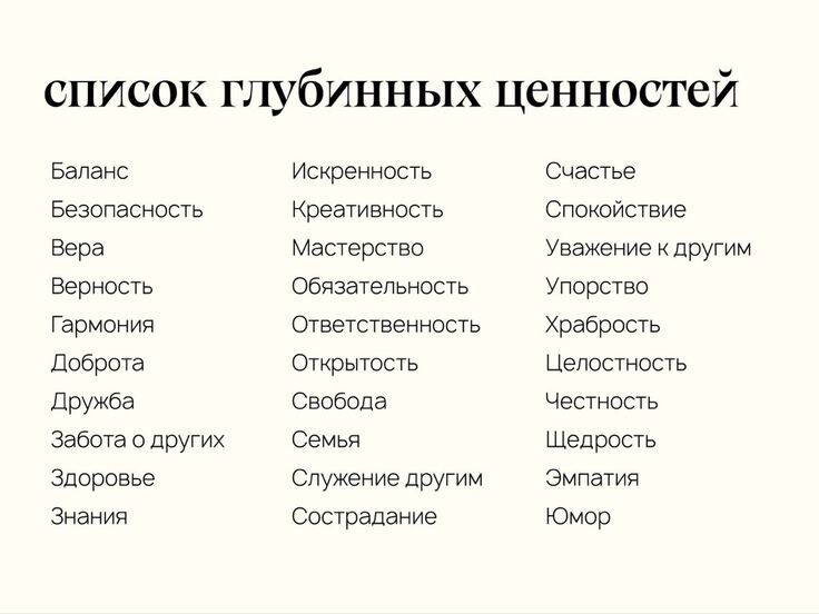 ⭐ 5-7 ключевых ценностей (то, без чего жизнь теряет смысл)