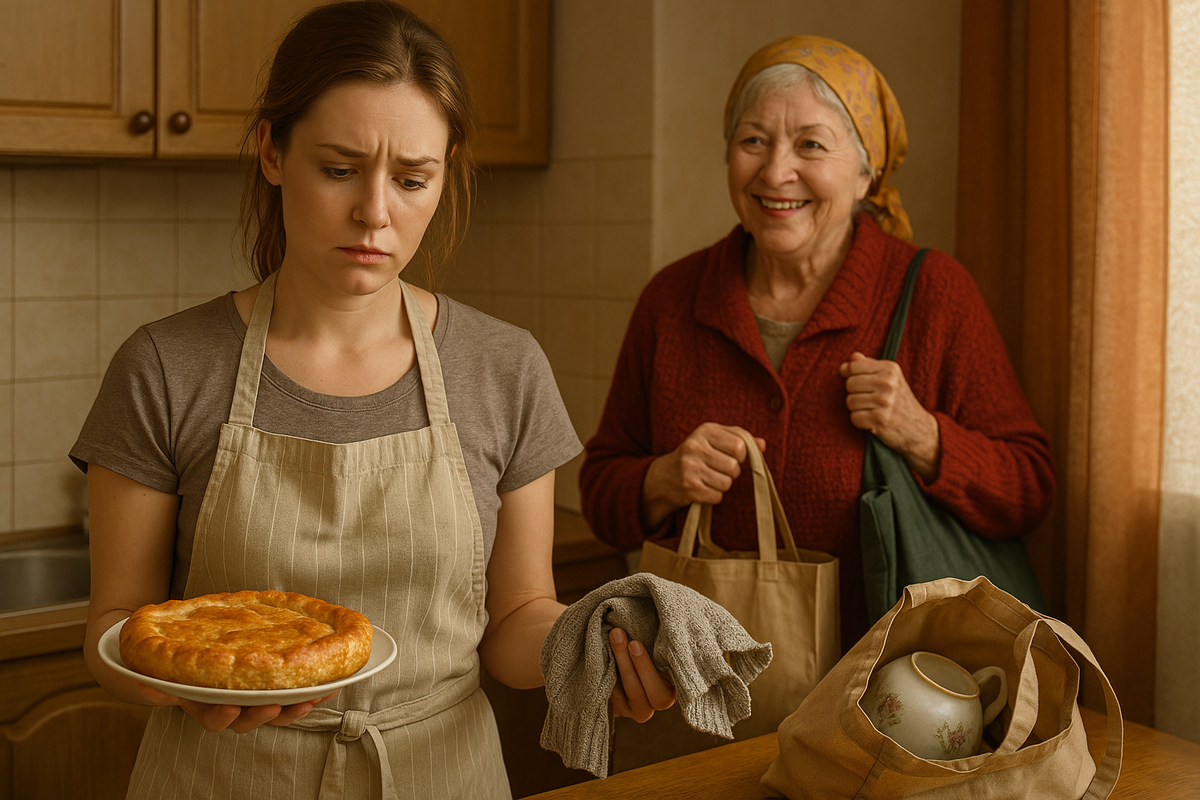 Оля, вытирая руки о фартук, вздохнула и пошла открывать. На пороге стояла тётя Света с неизменной улыбкой и полиэтиленовым пакетом, из которого торчала какая-то тряпка.