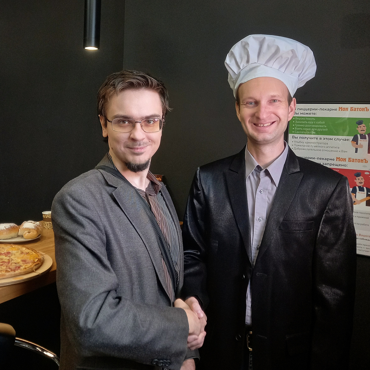 А вот этот кадр с Дня рождения Алексея Шаранина. Утром на своё ДР он заехал в пиццерию “Мон БатонЪ”, где мы работаем, чтобы сделать “буквально одно фото” для рекламы.