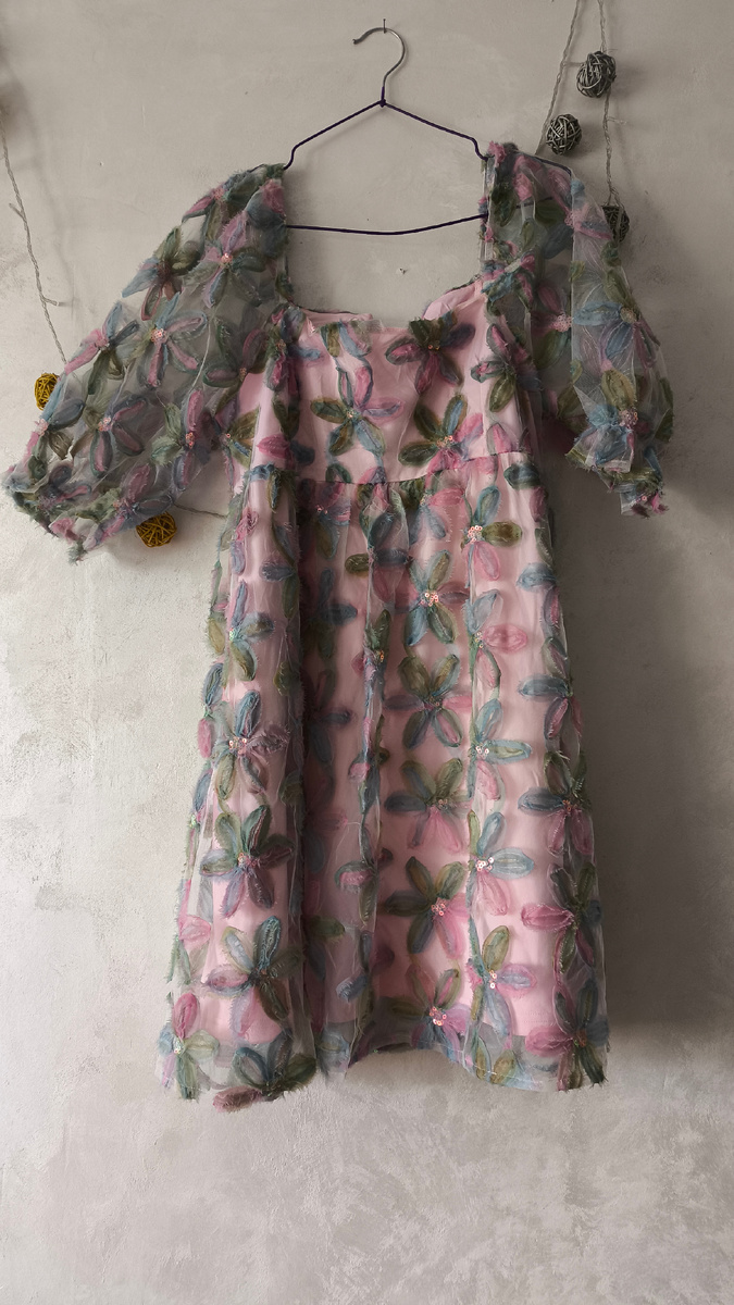 1. Платье из очень красивого материала. На фактически сделаны объемные цветы из шифона