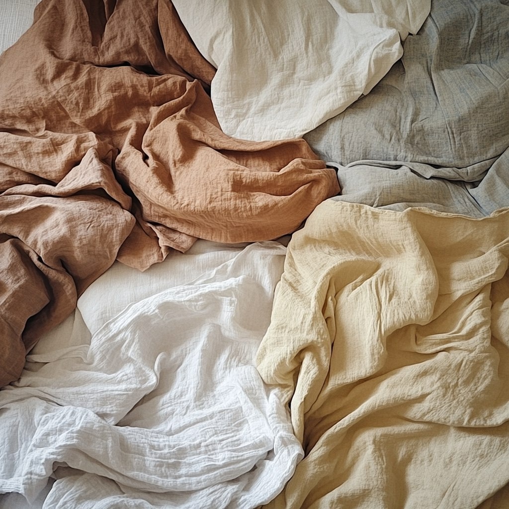 Создано на основе запроса: Crumpled bed linens, spread out on the bed, close-up, brown tones, surrealism