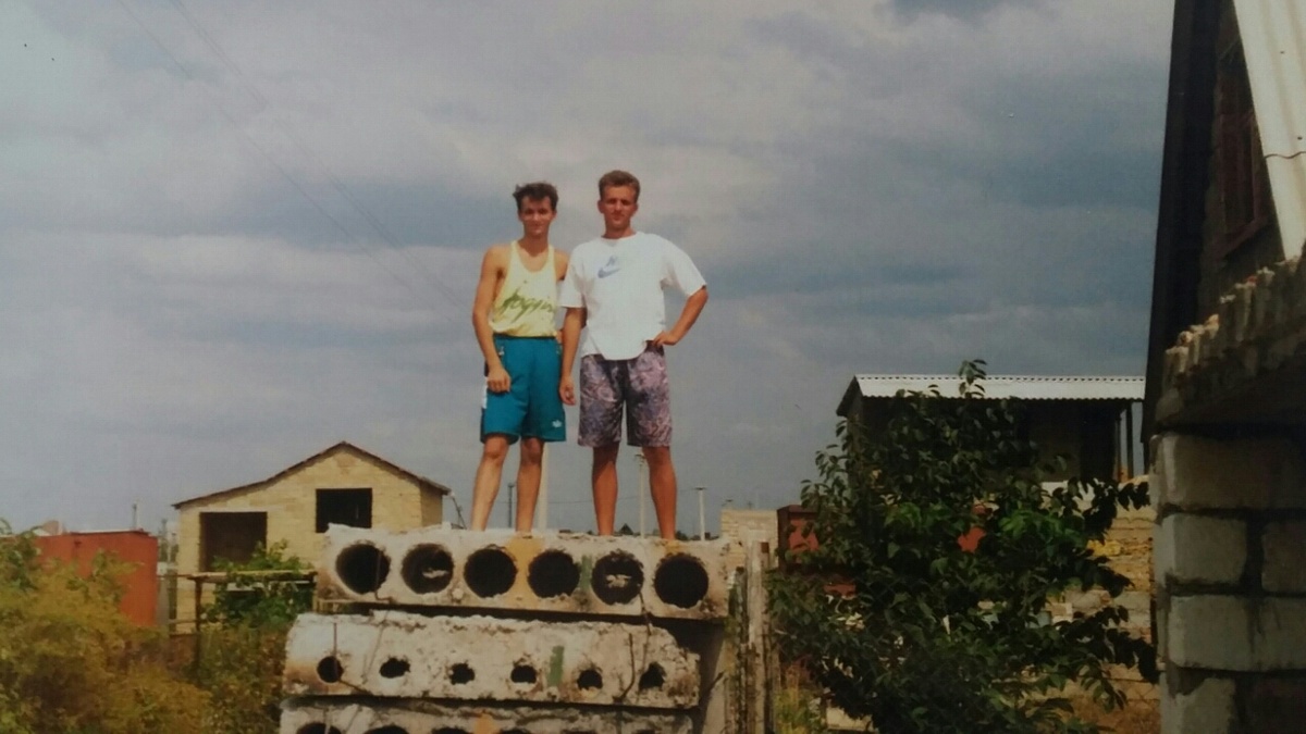 ПРО ФОТО: с братом на строительстве дачи, папа с фотоаппаратом. Обзаведясь участком в 4 сотки в 1988 году (давали, чтобы люди кормили себя сами при пустых полках в магазинах, земля скала, на ней степь, слой луговой земли, толщиной в пару десятков сантиметров, десятки самосвалов земли пришлось завезти), папа решил построить дом, чтобы было где детям жить (тоже, люди, сами себя обеспечивайте, тем более сейчас, влазьте в долги, поможем, банкам ваши деньги дадим, все должны быть на крючке, нечего ваши тратить на то, что в первую очередь нужно, жильё, в котором уже остальное), так почти всё стало уходить туда, питание и одежда были, как у всех, в квартиру уже ничего не покупалось, наш "Запорожец" папа не стал менять на "Жигули" или "Москвич", а хотел, но по бездорожью на других машинах не навозишься строителеф и строительных материалов, ещё и второй "Запорожец" приобрёл, так как машина оказалась как раз по этим делам спецом, а также купил Иж "Пирожок" и ЗИЛ 130 "Самосвал", так как был Председателем Кооператива "Дружба", о нём писал, это наше семейное предприятие, под закат Союза было открыто, так как надо же было что-то делать, кормить семью, все дети в школе учились. В общем, пока в доме до сих пор никто не живёт, сестра и брат в своих квартирах вместе со своими семьями, а я и мама в квартире нашей семьи, которой 52 года, вселились сюда в 1978-м, обо всём этом писал и фотографии публиковал, а земной путь папы в 2012 году закончился, моли Бога о нас и молим Бога о тебе, всё может быть у Бога, Его пути, суды, решения неисповедимы, на всё воля Всевидящего, который многомилостивый, поэтому благодарите, у ног Твоих.