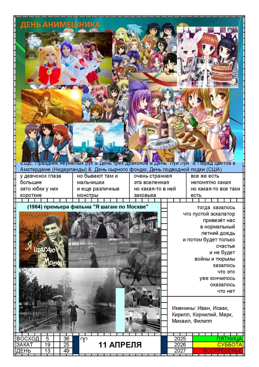 Календарь 11 апреля