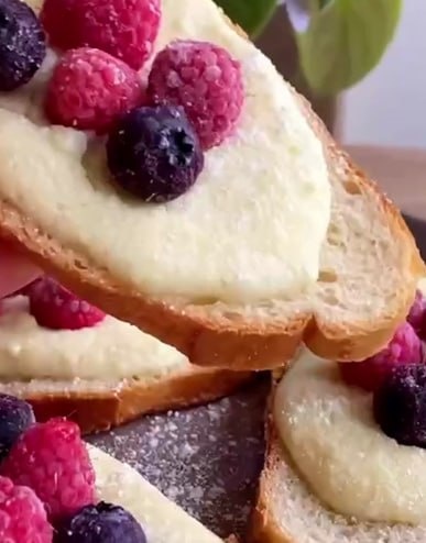 🥯 ИНГРЕДИЕНТЫ 🥯 -батон белый- 5ломтиков -творог, не сухой- 200гр -яйцо- 1шт -молоко- 200мл -крупа манная- 2чл -сахар- 3стл -сметана- 1чл 🍽 ПРИГОТОВЛЕНИЕ 🍽 -Подготовить ломтики белого батона -К творогу добавить сахар и яйцо -Добавить сметану и всыпать манную крупу, тщательно перемешать -Ломти батона обмакнуть в молоко с 2х сторон -Разместить их на противне, застеленном пергаментом -На ломтики батона выложить творожную массу -Выпекать ленивые ватрушки в разогретой до 200град духовке 20мин -Украсить ягодами Приятного аппетита!!!