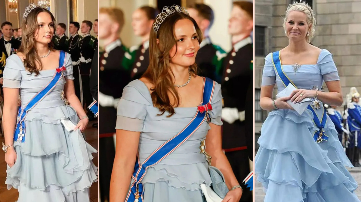 Принцесса Ингрид Александра блистала в жемчужной тиаре и бальном платье матери, когда посетила свой первый государственный банкет