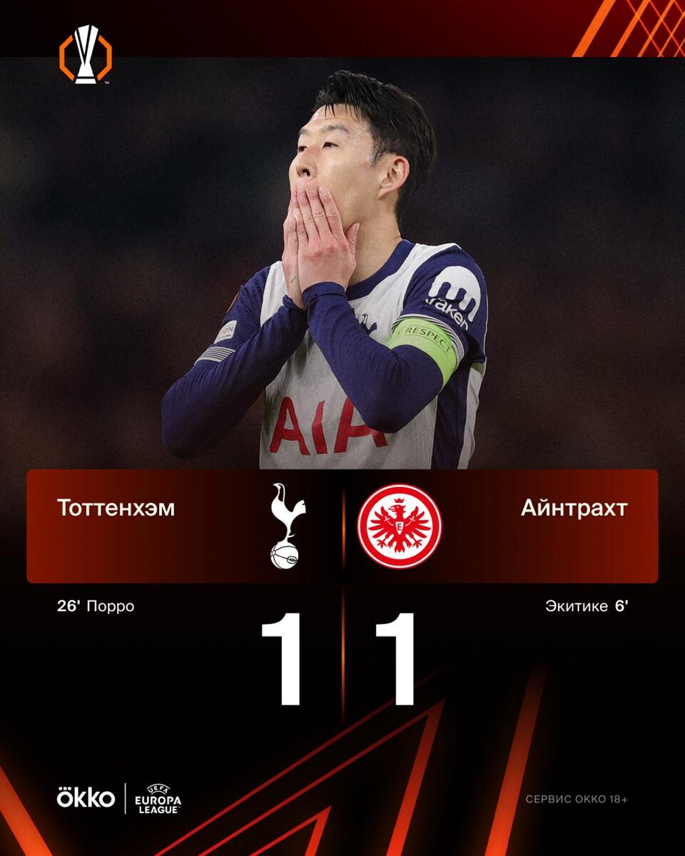 «Тоттенхэм» не справился с «Айнтрахтом» дома 🤷 Ждем ответку во Франкфурте. Точно будет интересно.