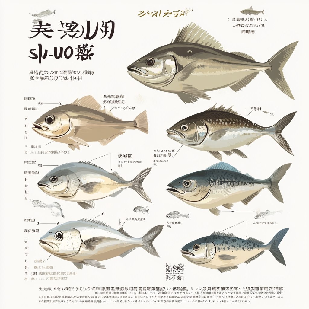 Автоперевод: Вертикальная инфографика, показывающая этапы роста японского ябер -джера (бури) как «Шуссеуо» (карьерная рыба) с региональными изменениями имени.