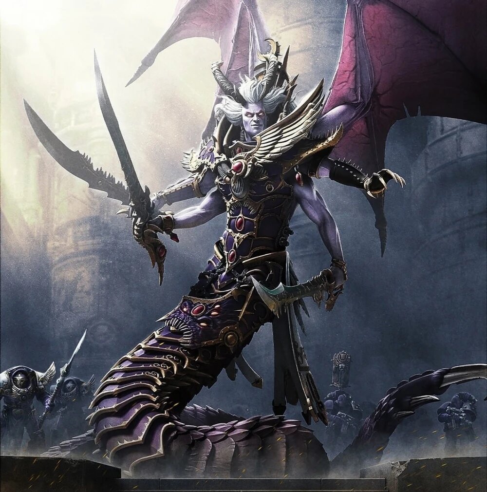 Он получил титул “Змея Хаоса”, став одним из самых могущественных и ужасных демонов Слаанеш. Он правит своими демоническими владениями в варпе, наслаждаясь вечным потоком удовольствий и мучений.