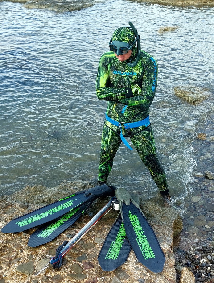 И первыми в дело пошли лопасти salvimar speeder carbo medium в сочетании калош speeder.