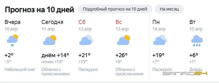 В субботу утром +13 градусов, в дневное время столбик термометра поднимется до отметки +20 градусов. Синоптики обещают юго-западный ветер со скоростью до 8 м/с. В течение дня солнечные лучи скроются под толщей облаков, но осадков не ожидается.