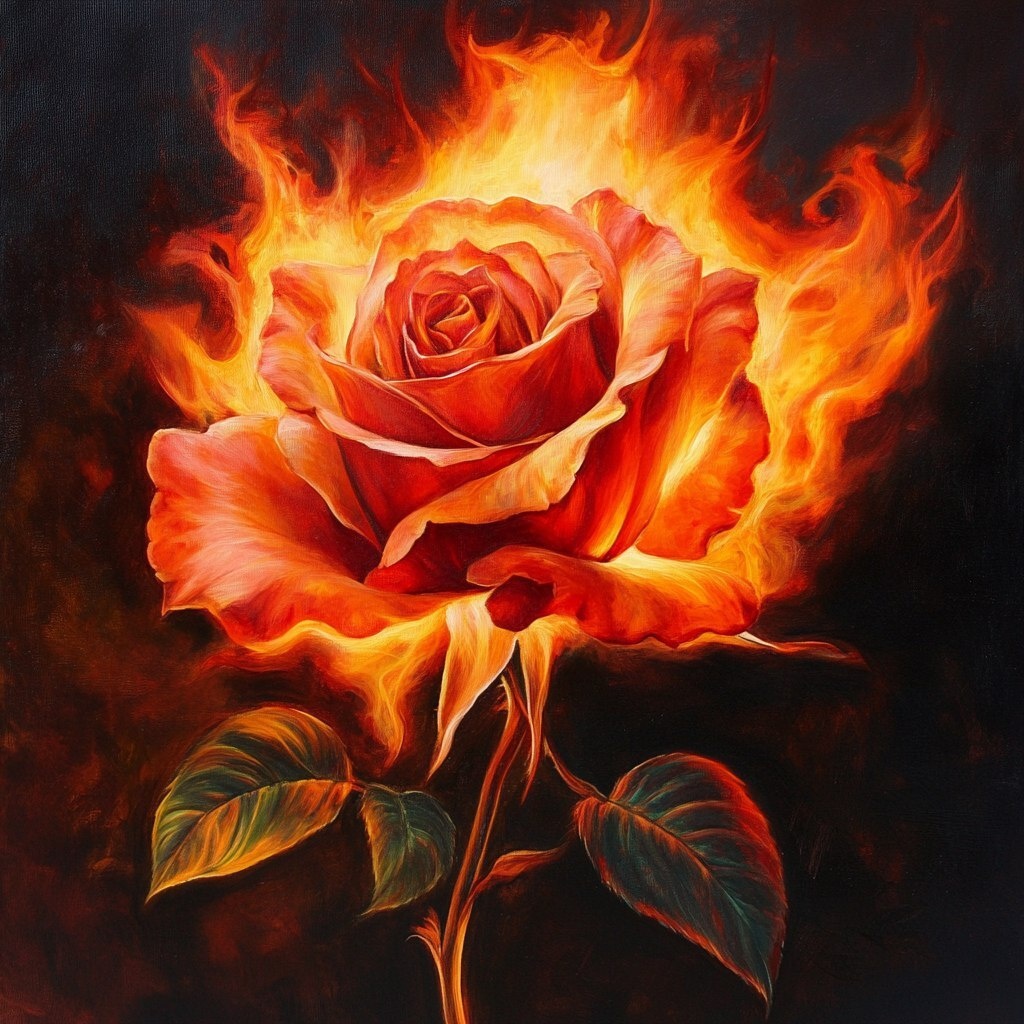 Создано на основе запроса: flaming rose --- Автоперевод: Пылающая роза Круто получилось? 🤔 https://dzen.ru/id/65c0c65c86e4f837c27b24d7 #ИИ #AI #нейросеть #midjourney #art