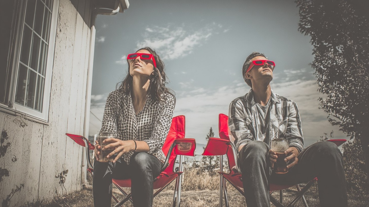 Создано на основе запроса: We are sitting in our lawn chairs and drinking a beer while watching the solar eclipse