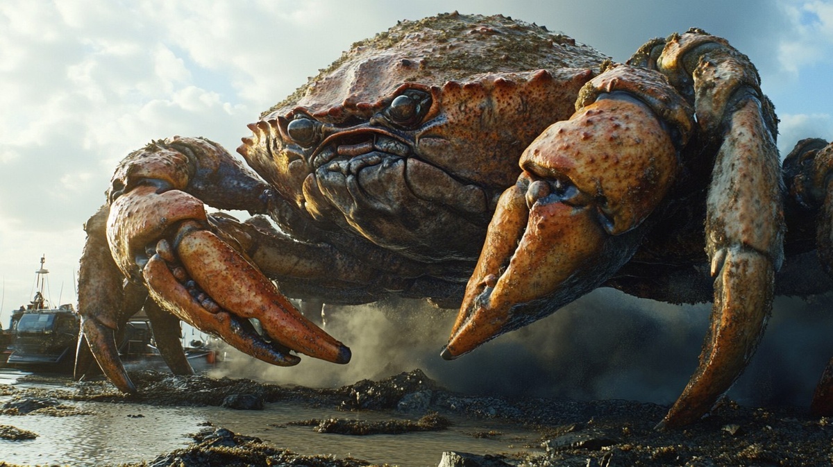 Создано на основе запроса: Cinematic Still from the Monsterverse of a giant Crab
