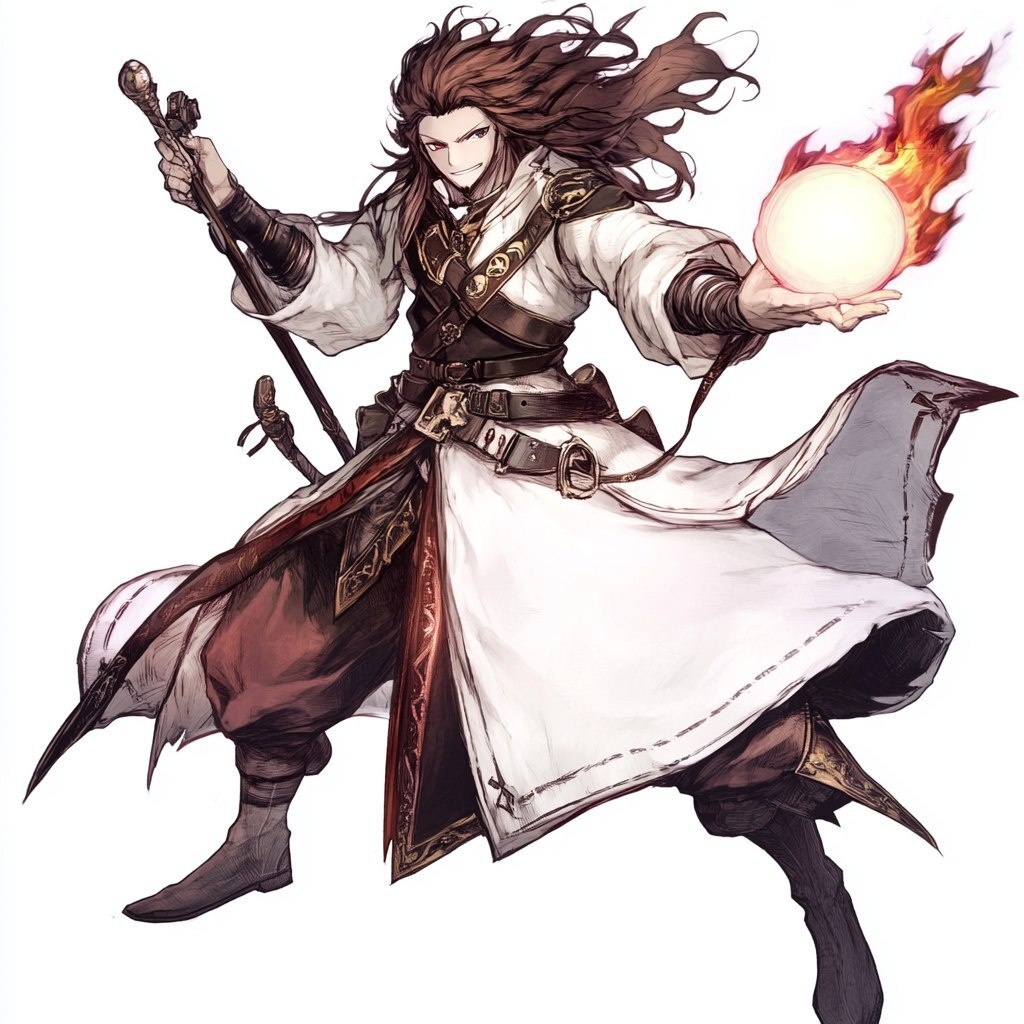 Создано на основе запроса: Fantasy concept illustration, Male, Human, Mage, Stern, Long simple tunic, Leather armour, Battle staff in hand, Ball of fire that floats on his right hand, Long disheveled hair, Lightly shaved beard, Octopath traveler style, White background, High quality, Exaggerated fighting pose --- Автоперевод: Фэнтезийная концепция иллюстрация, мужчина, человеческий, маг, суровая, длинная простая туника, кожаная броня, боевой персонал в руке, огонь, который плавает на правой руке, длинные растрепанные волосы, слегка бритая борода, стиль осьминога, белый фон, высокое качество, преувеличенная боевая поза Как тебе этот вариант? 🤔 https://dzen.ru/id/65c0c65c86e4f837c27b24d7 #ИИ #AI #нейросеть #midjourney #art