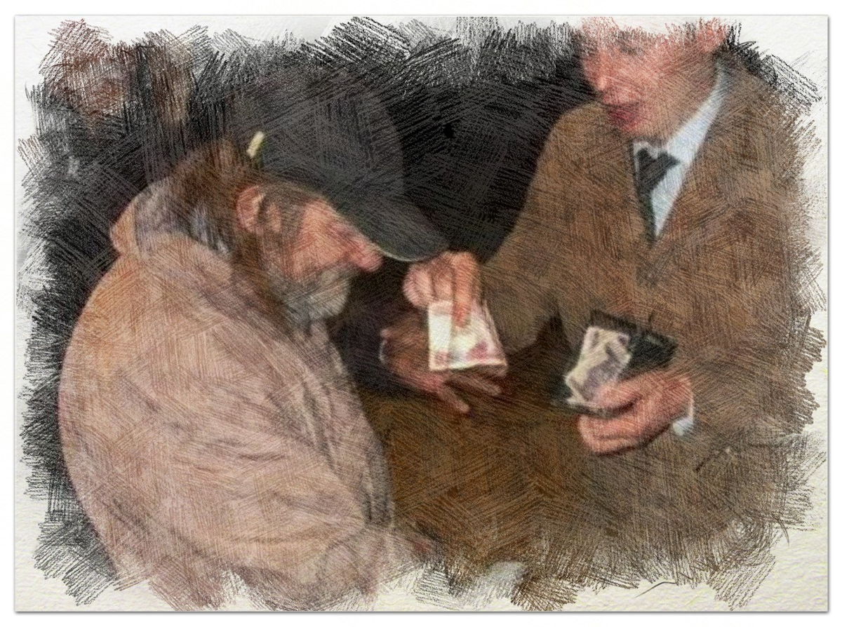 И на следующий вечер он уже раздал «купюры» у «Пятёрочки» своим знакомым бомжам. Те хватали деньги и убегали.