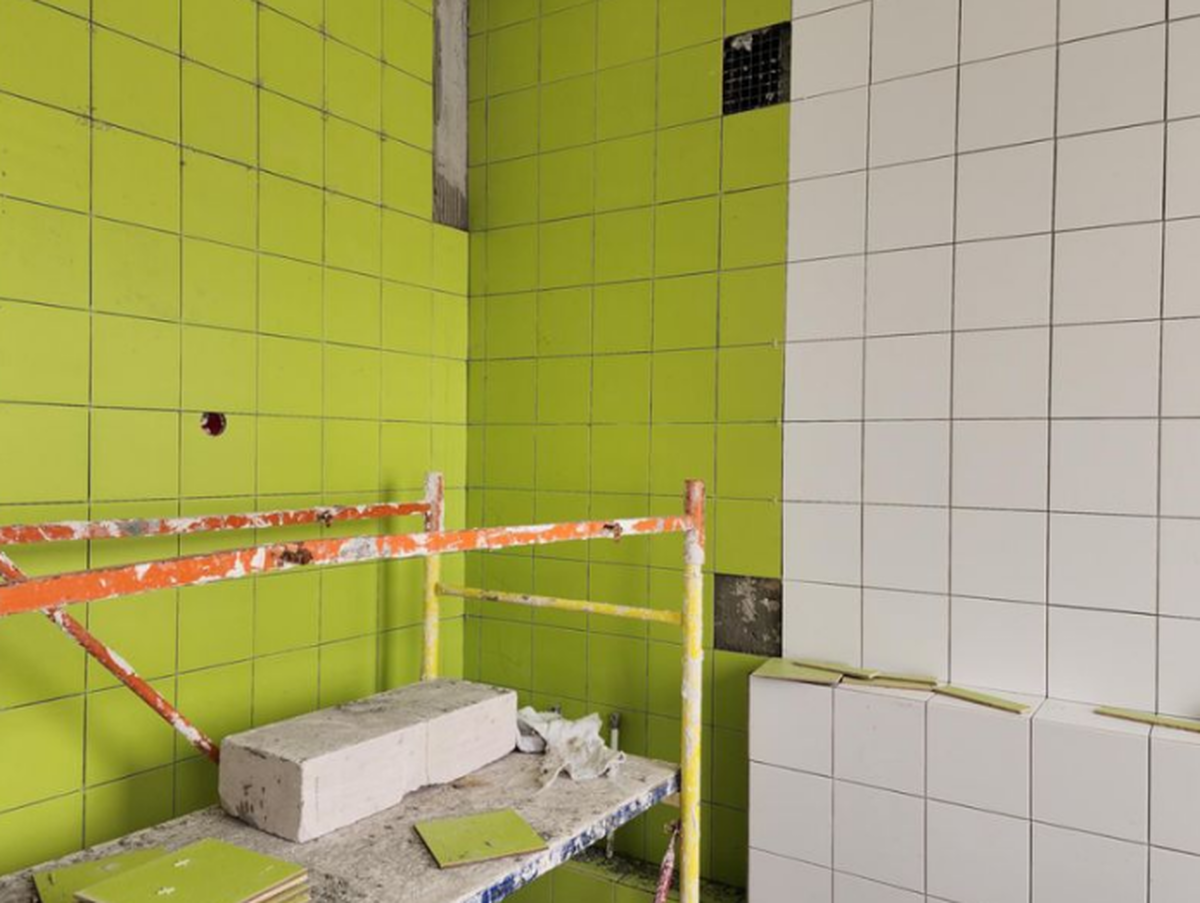 Сейчас строители приступили к чистовой отделке. В санузлах уже уложена новая плитка на стенах, а в ближайшие дни начнётся укладка керамогранитной плитки на пол.