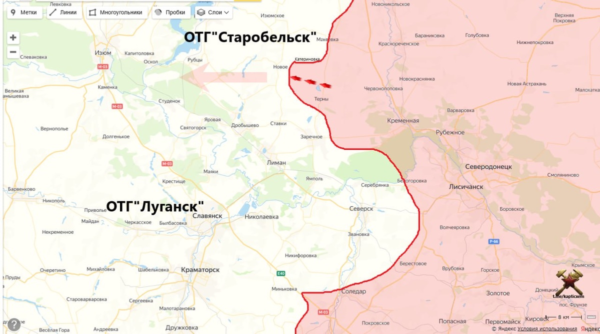 В ответ на пост Изюмское направление. Торский выступ постепенно перетек в Невский. Уже даже не в выступ, а в Терно-Невский клин. После взятия Мирного и Катериновки завязываются бои за Колодезное и Новое. Потеря которых, вынудит ВСУ отойти за р.Нетриус (Не-три-ус) Опираясь на недавно освобожденную Ямполовку, ВС РФ начали бои за Торское предполье. В комплексе с этим, наносятся удары по переправам у деревни Дроновка, через которую идет снабжение группировки противника в Кременском лесу. И все навевает на определеные мысли, что в этом большом лесу мы отказываемся от бесконечной игры в "индейцев", по типу охоты друг на друга в горах Чечни между 1-й и 2-й чеченскими 1996-1999 годах. Разбив переправы у Дроновки, взяв Торское и блокируя Серебрянку, ВС РФ практически изолируют поле боя и переводят ВСУ в Кременском лесу на так у них популярную "москитку", с медленной гибелью всей группировки. схемы и карты