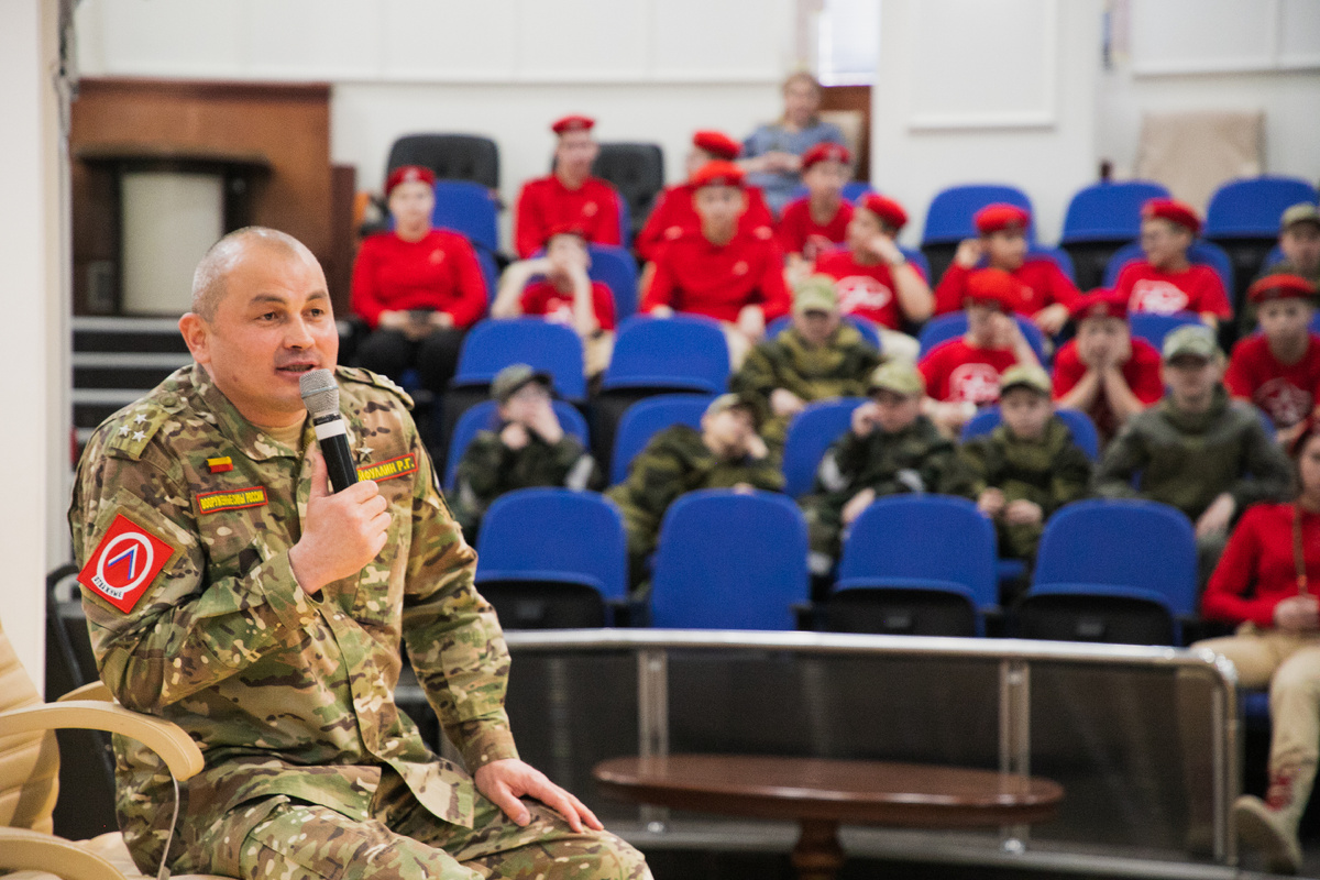 На встрече с юнармейцами, кадетами, учащимися школ города он рассказал о своём жизненном пути, о том, как с детства мечтал стать военным, какую роль в становлении его как будущего офицера сыграл дед.