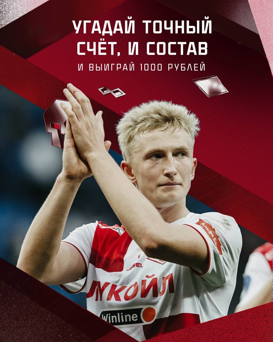 ⚽️🔵 Наша постоянная рубрика «Угадай счет» + «Угадай состав». ❗Заходи в комментарии, пиши свой вариант итогового счета и вариант стартового состава, первый угадавший получит 1к. ❗Пример комментария: Спартак 2:0 Динамо, Макси Денисов, Литвинов, Бабич, Рябчук, Барко, Умяров, Мартинс, Угальде, Марки, Тео. 🤩 Подпишись на Хроники «Спартака» ☑️