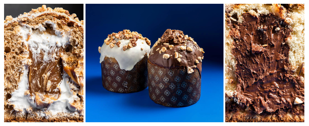 Кулич "Дубайский шоколад" (5500 рублей) – это воздушное тесто для панеттоне с добавлением фисташковой пасты с двумя видами начинок, которые расположены слоями – фисташковый мусс и "дубайская" начинка на основе жареного теста катаифи с добавлением фисташковой, арахисовой и кунжутной паст. Украшается кулич сублимированными ягодами и рублеными фисташками. Эффектный дизайн – бонусом)