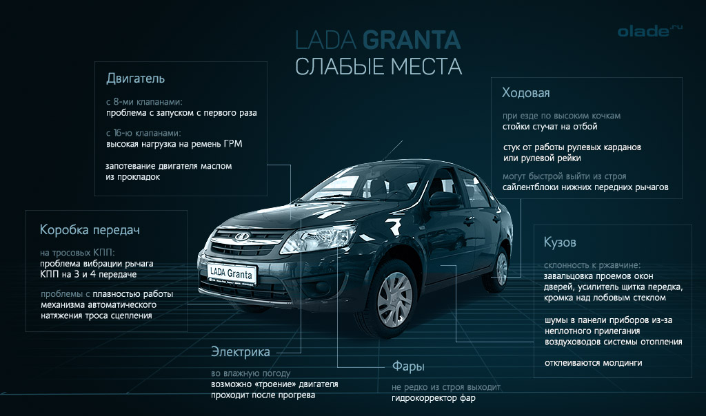 Гранта начинает «радовать» проблемами, едва выехав из салона. Таксопарк отметил, что многие неисправности связаны с качеством сборки — будто завод спешил и забыл закрутить половину болтов.