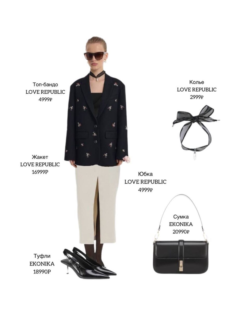 LOOK OF THE DAY Сегодня образ, который можно смело брать на заметку — на случай, если впереди важное мероприятие: день рождения в ресторане, выпускной у ребёнка, свадьба или просто свидание. Ключевой акцент — жакет с деликатным цветочным принтом. Он интересный, но не кричащий, а благодаря универсальному крою легко вписывается в любой повод. Всё просто, но с настроением. жакет топ юбка туфли сумка колье #Образ