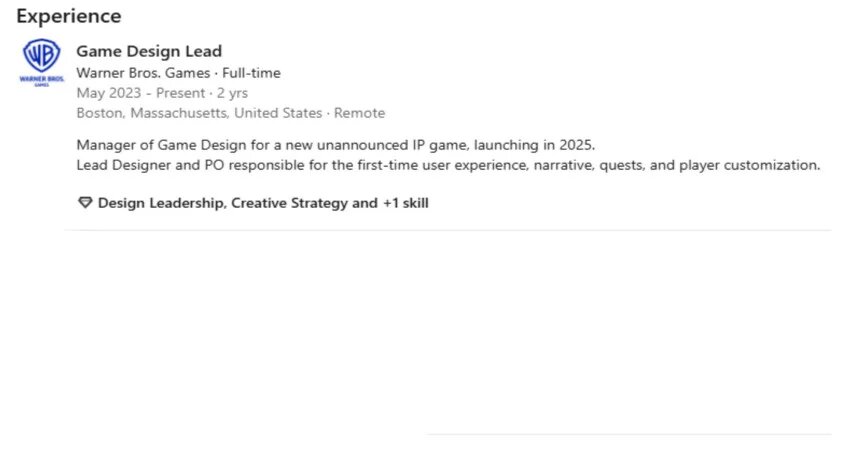 Пользователи Сети решили раскопать больше информации о текущих проектах Warner Bros. Games. На сей раз они обратили внимание на Linkedin-профиль старшего гейм-дизайнера Брэндона Марайя (Brandon Maraia), в котором указано, что с 2023 года разработчик трудится над неким проектом по новой интеллектуальной собственности со сроком релиза в 2025 год. На данный момент трудно сказать, над какой именно франшизой может работать Warner Bros, учитывая, что не так давно компания закрыла несколько студий и отменила ряд проектов. С особой горечью игроки встретили новость о закрытии Monolith Studios, но помимо неё под раздачу также попали WB Sand Diego и авторы ныне мёртвого файтинга Multiversus из Player First Games. Слухи о создании игры по новой интеллектуальной собственности довольно примечательны на фоне заявлений генерального директора Warner Bros. Discovery Дэвида Заслава (David Zaslav) о сосредоточенности на четырёх основных франшизах компании, включая DC, «Гарри Поттера», «Игру престолов» и