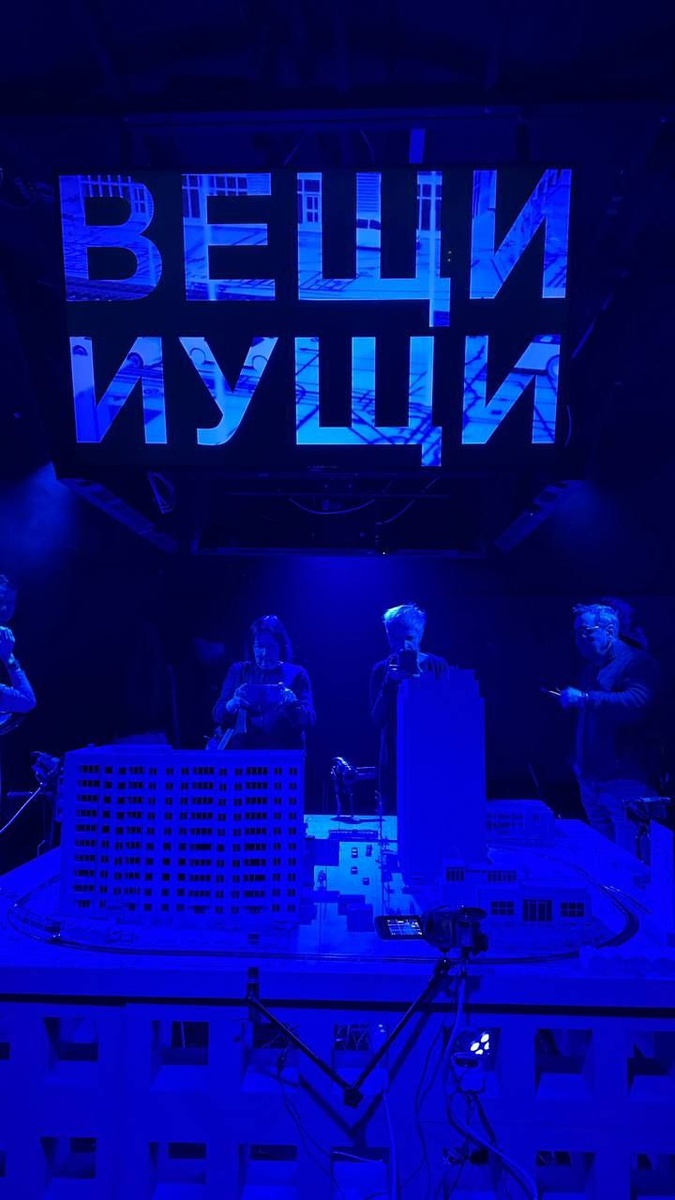 На прошлых выходных в театре Практика прошёл спектакль «Вещи и ущи» В центре стоял макет с элементами города. Зрители были рассажены вокруг. И вокруг этого макета стояли актёры, которые одновременно будто играли в человечков и снимали всё происходящее, и озвучивали героев. Да, актерами были не только актеры, но игровые человечки) Очень необычная подача Он сделан по текстам современной писательницы Аллы Горбуновой Спектакль очень лёгкий, и наверно даже с насмешкой какой-то) #театр