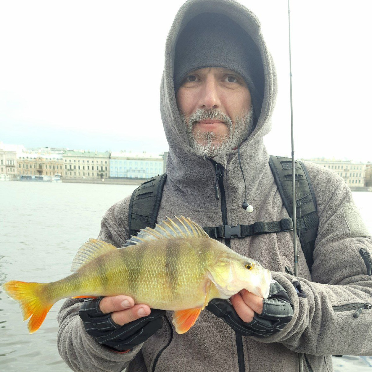 ‼️10.04.25‼️ 📍 СПб, Университетская набережная 🌊 р. Большая Нева 🎣 Спиннинг 🐠 Окунь Матрос освоился в новых погодных условиях, я покуда нет... Немного поперебирав приманки дрожащими руками встретил толстячка на 660 грамм. 🧐🎣