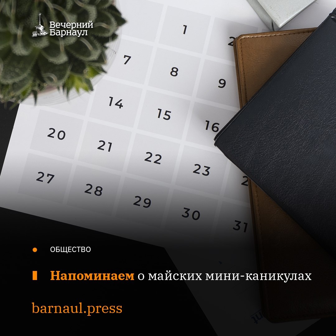 Жителей России в следующем месяце ждут продолжительные выходные. В этом году россиян ожидает восемь выходных дней: с 1 по 4 мая и с 8 по 11 мая. Первое мая и 9 мая — выходные праздничные дни, приуроченные к Дню труда и Дню Победы. 🗓️ Всего в мае россияне будут работать 18 дней, а 13 — отдыхать. Согласно производственному календарю, 30 апреля является предпраздничным рабочим днём, продолжительность которого сокращена на один час. Фото: freepik.com @barnaul