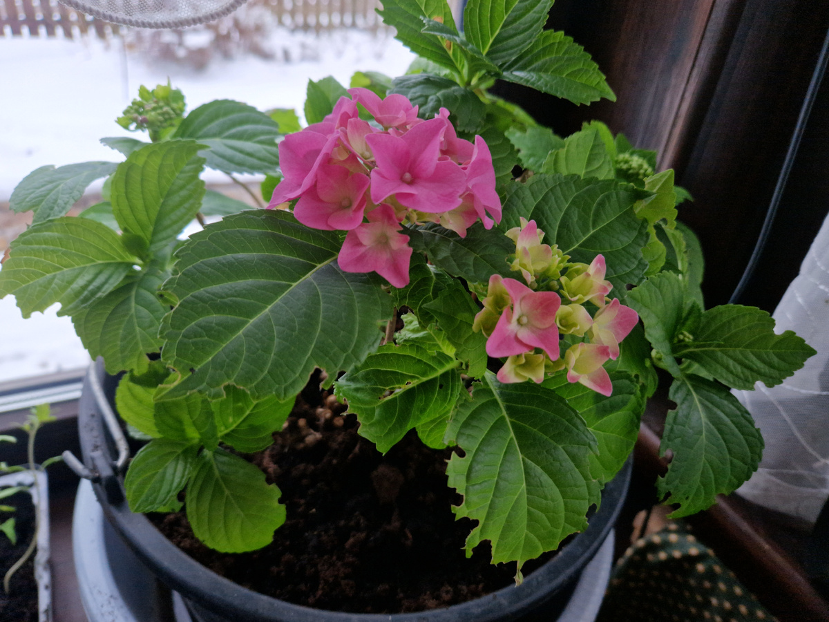 В этом году у меня впервые зацвела крупнолистная гортензия. Когда слышишь слово "впервые", начинаешь подозревать, что сейчас последует уточнение по времени. Так и есть. Впервые за семь лет. Первым (и до сегодняшнего дня единственным) ее цветением было цветение в горшке на полках "Оби". А дальше по классике. "А много ль корова дает молока? Да мы молока не видали пока." Гортензия (имя стерлось из памяти) нехотя выходила из зимы, лениво зеленела. На приросте ветвей экономила. Цвести отказывалась совсем. Я, конечно, тот еще гортензиевод. Однако, почву под ней раскисливала, торфа подсыпала, иголочки еловые приносила, на зиму укрывала. Мне казалось, что этого достаточно. В итоге, зелень худо-бедно получала, а цветов нет. Правда однажды, появились зачатки бутонов, но раскрыться они так и не успели, так как наступила осень. Однако, именно этот случай заставил меня задуматься: а может быть моей гортензии просто не хватает теплого времени. Ну, и так как весь прошлый сезон у меня был экспери