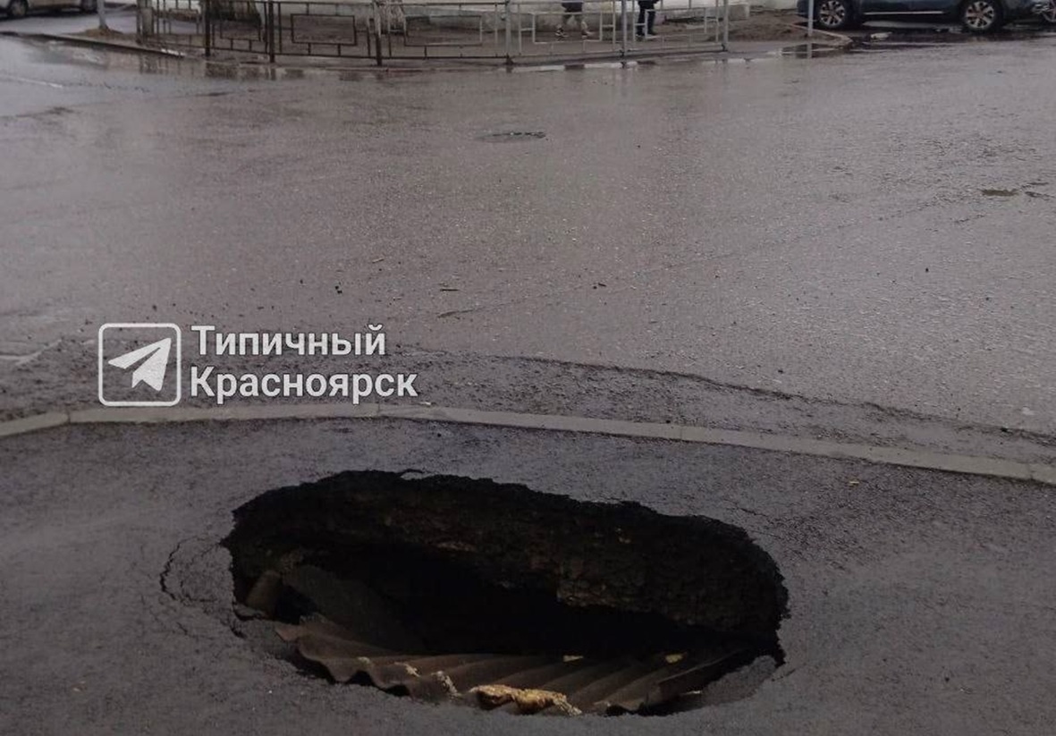 В центре Красноярска провалился отремонтированный год назад тротуар