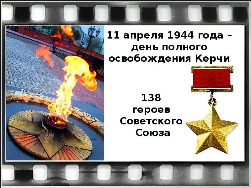 11 апреля 1944 года Керчь была окончательно освобождена. За бои при обороне и освобождении Керчи 146 человек были удостоены высокого звания Героя Советского Союза, а 21 воинская часть и соединение были удостоены почетного звания «Керченские».