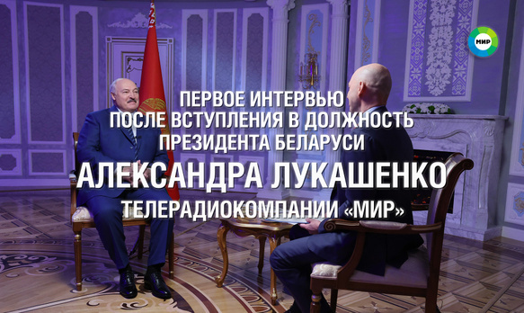 Первое интервью после вступления в должность президента Беларуси Александр Лукашенко дал телерадиокомпании «МИР». С главой государства беседовал председатель МТРК «Мир» Радик Батыршин.
