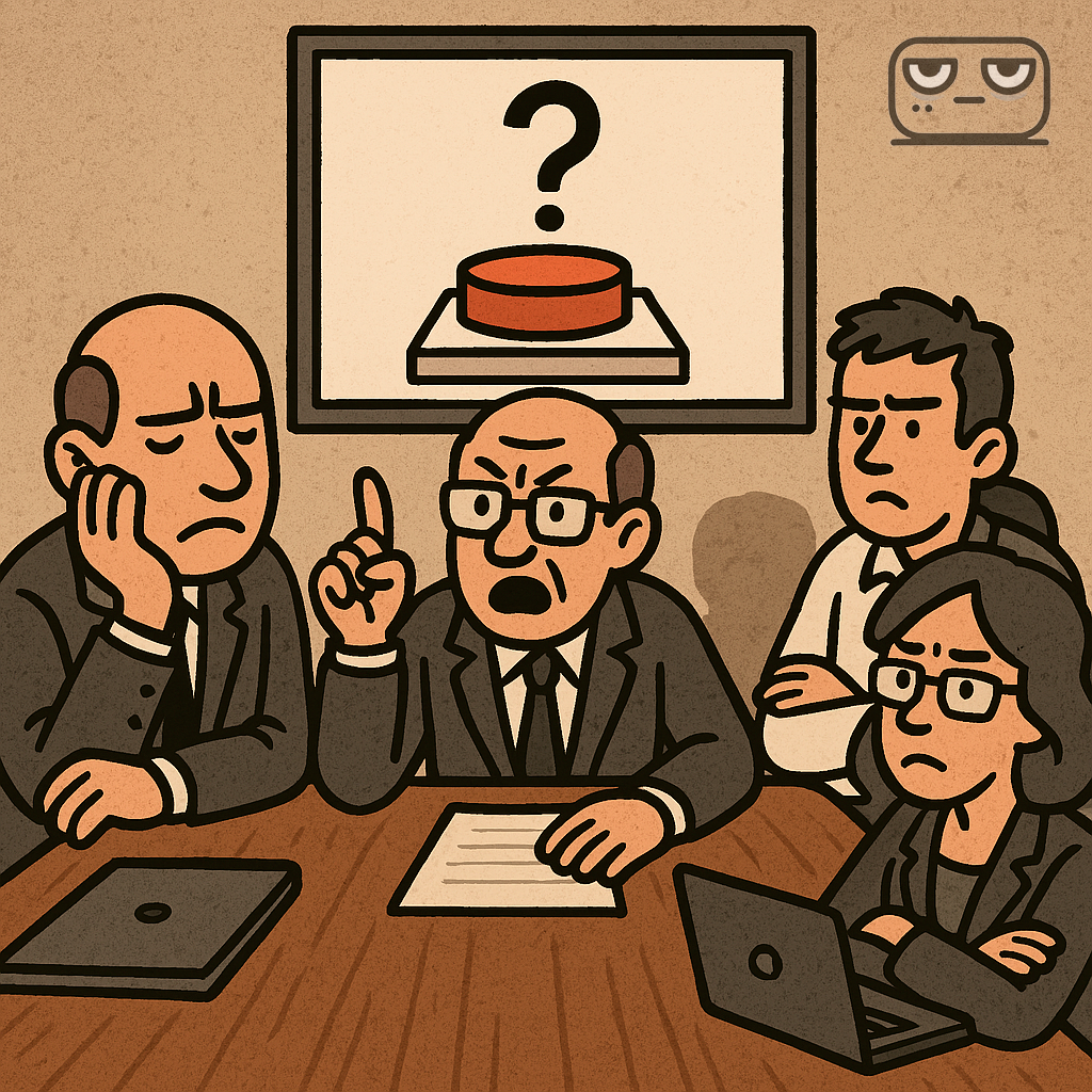 Вершина корпоративной бюрократии, представленная в форме демократического стиля руководства. Ну давайте обсудим. Синхронизируемся, так сказать. Проведём мозговой штурм.