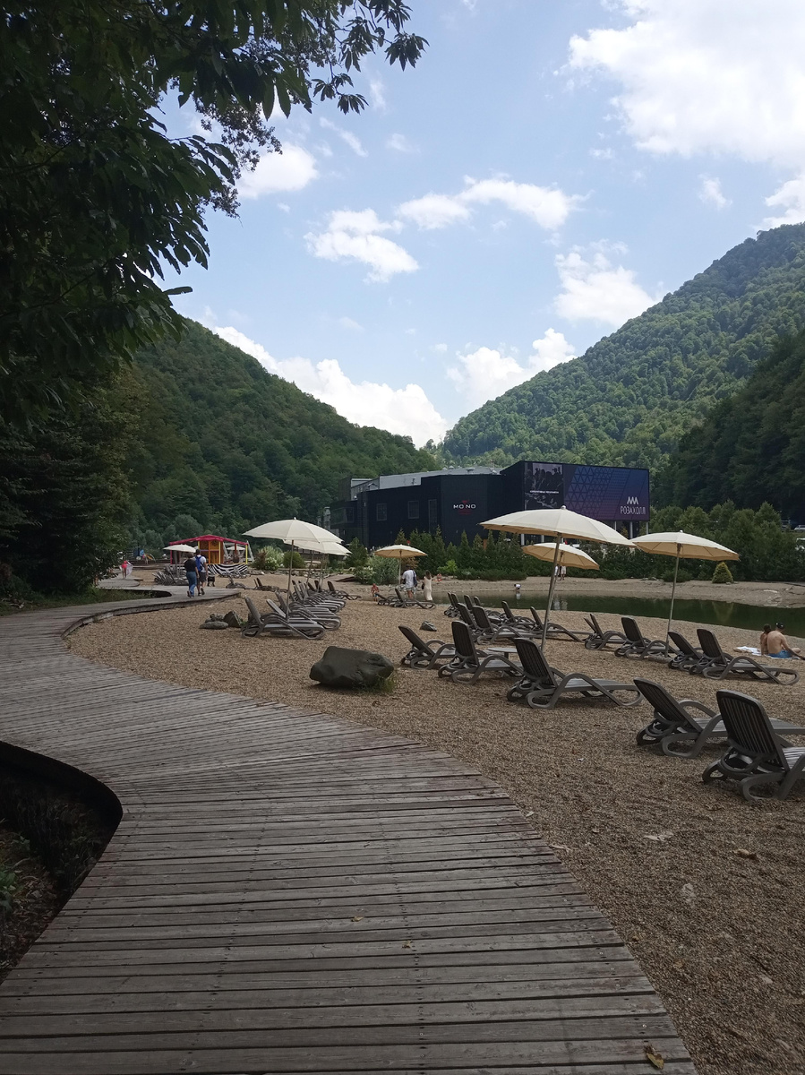 Если у вас совсем немного времени, а побывать в горах во время отдыха в Сочи все-таки хочется, то можно осуществить это за 4 часа (возможно, чуть больше за счет интервалов движения транспорта). Отправной точкой маршрута будем считать транспортную развязку на Аэропорт с ул. Ленина на ул. Мира (эстакада). Отсюда можно идти либо на ж/д вокзал и ехать на электричке за 275 руб., либо ехать на автобусе 105Э (именно "Э"!) за 180 руб. Нужно доехать до конечной остановки - Роза-Хутор (ж/д вокзал Роза Хутор для электрички и ГЛК Роза Хутор для автобуса). На автобус можно сесть либо на остановке "Ж/д вокзал", либо на остановке "Автошкола" (пройти под мостом по ул. Мира, около магазина "Пятерочка" по наземному переходу перейти ул. Кирпичная и повернуть налево, дойти до еще одного наземного перехода и по нему перейти дорогу к остановке). Интервал движения автобусов 30-40 минут. Оплата либо у водителя наличкой или картой, либо в салоне автобуса через валидатор, причем одной картой можно оплатить прое