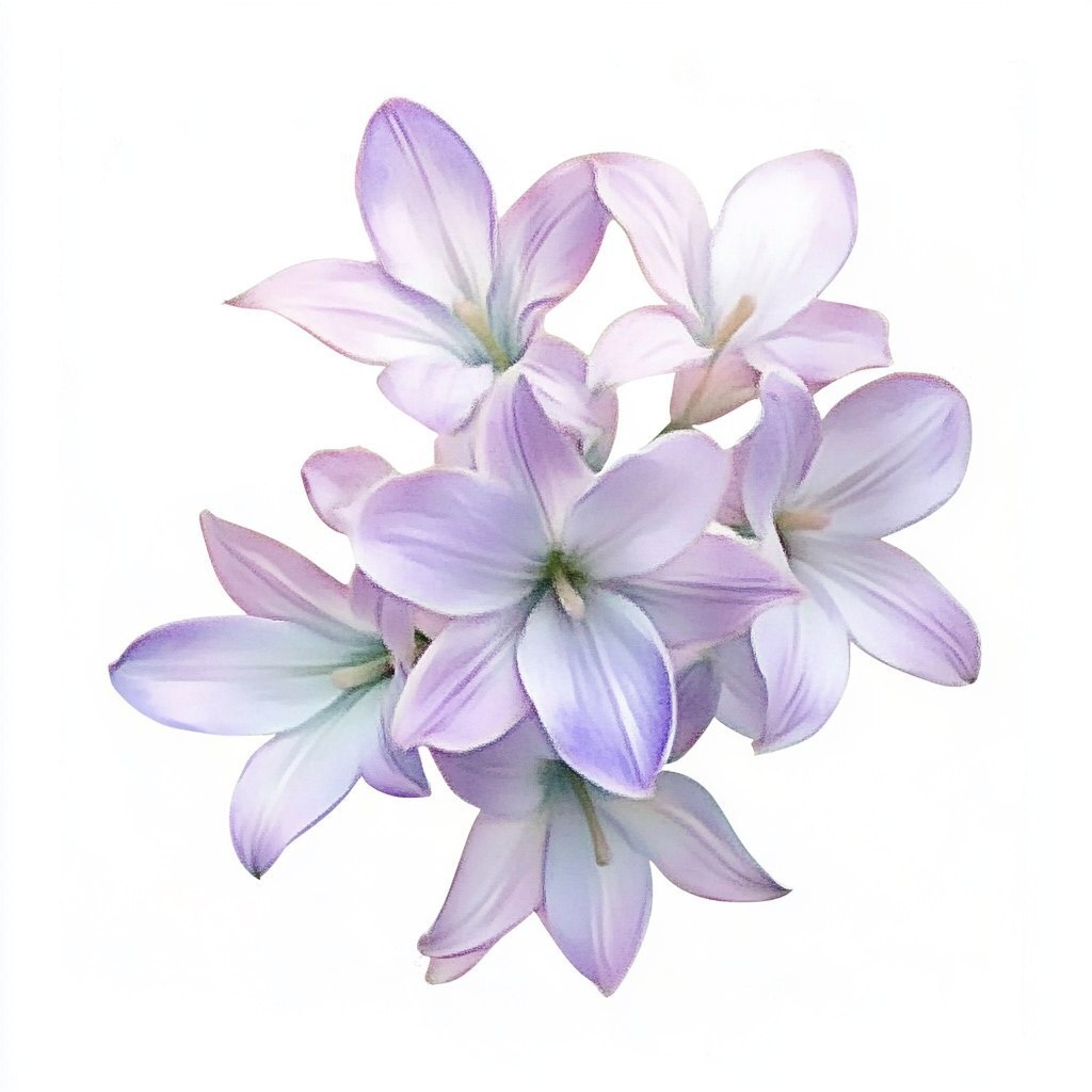 Создано на основе запроса: A small bouquet of pastel lavender lily petals, isolated on a white background, in the style of watercolor.