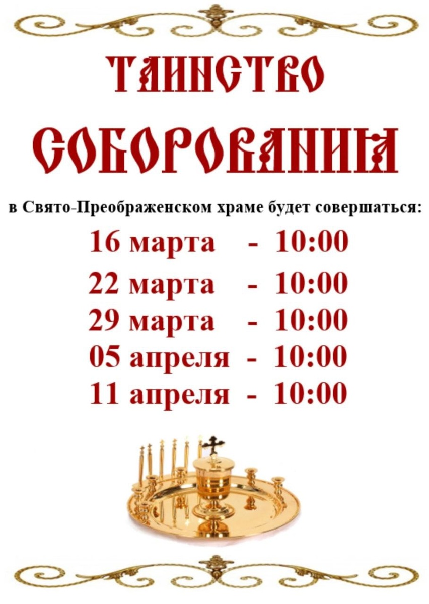 Сегодня 11 апреля в 10:00 в нашем Свято-Преображенском храме город-курорт Геленджик состоится последнее Соборование в этом Великом посту.