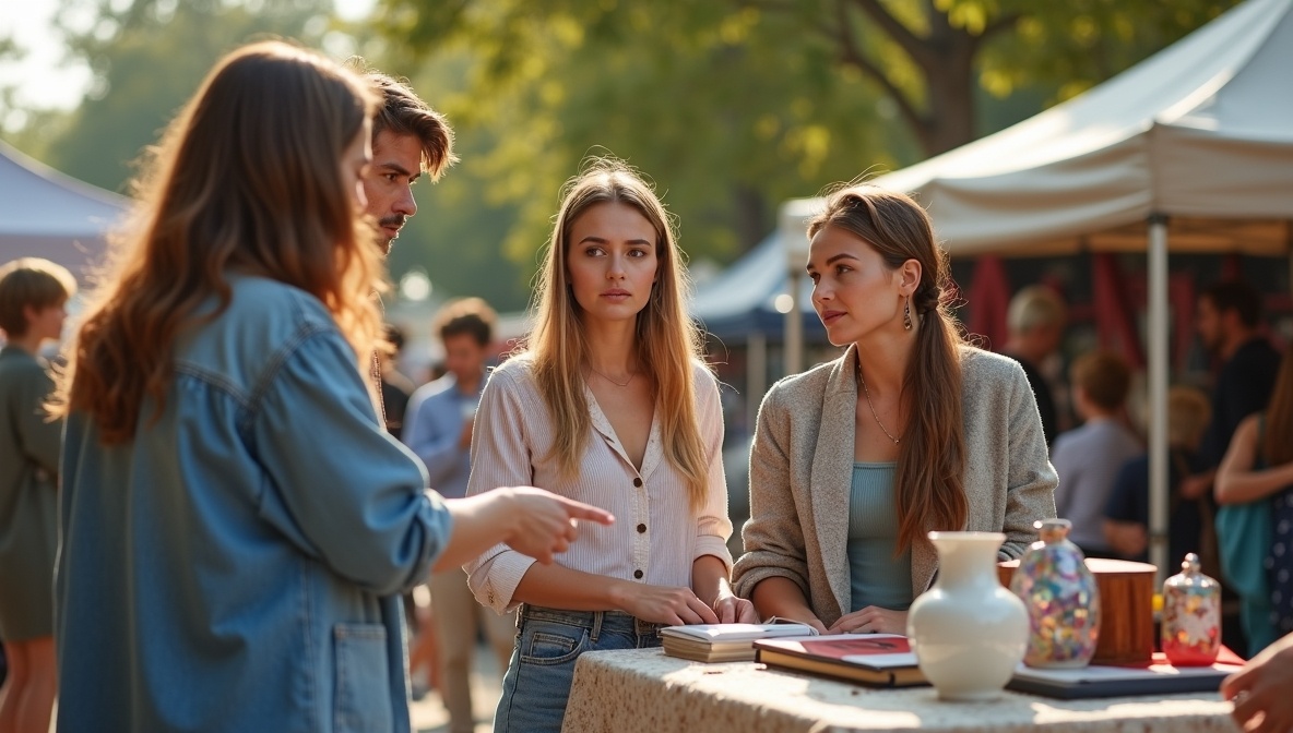 В субботу Лида и Маша отправились на блошиный рынок. Саша отмазывался работой, но пообещал: «Если увидите реально нашу кофту, тогда я вмешаюсь». Подруги шли мимо рядов, где старушки продавали кастрюли, кто-то выставил старые книги. Наконец, Маша ткнула пальцем: «Смотри, та самая кофточка!» На вешалке виднелся знакомый принт. Да и рядом, на другом торце стола, Лида заметила вазу — её собственную, с ободком под хохлому.