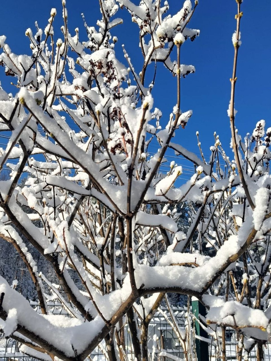 🌨️ Апрельский сюрприз! Сегодня утром за окном — настоящая зимняя сказка: нежный снег пушистыми хлопьями укрывает землю, а сквозь облака