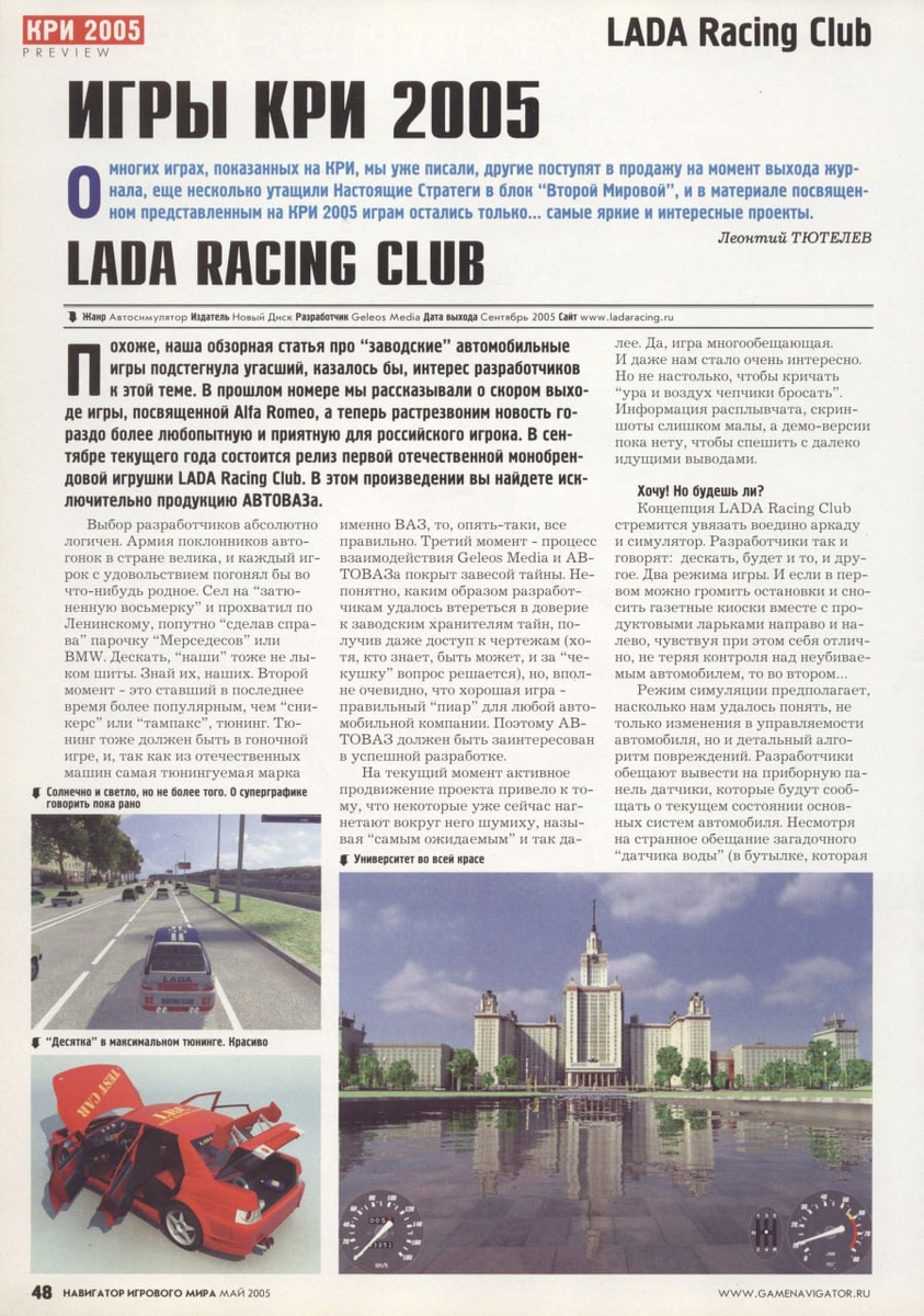 Превью на LRC. Не рассчитали тормозной путь, или не смогли отрулить, заблокировав колеса, и уперлись мордой в твердую субстанцию? Будьте готовы к тому, что либо радиатор повредится, либо патрубки системы охлаждения слетят, антифриз выльется, и в скором времени машина... "Закипит!" Именно так уверенно заявляют на официальном сайте девелоперы. А наивные игроки им верят. Хотя непонятно, чему кипеть, если все выльется? Иное дело, что движок без охлаждения перегреется (а вот как раз перегрева по плану разработчиков в игре не намечается - только пресловутое "кипение"). Кстати, если раскрошить поддон картера, то выльется масло, и двигатель "словит клина" - тут все верно, ни к чему не придерешься. И все же, если господа разработчики претендуют по отношению к своему проекту на использование слова "симулятор", то при этом стоило бы чуть аккуратнее орудовать техническими терминами и описывать процессы. В частности, говорится, что даже одно перечисление (ударение на это слово) его достоинств "