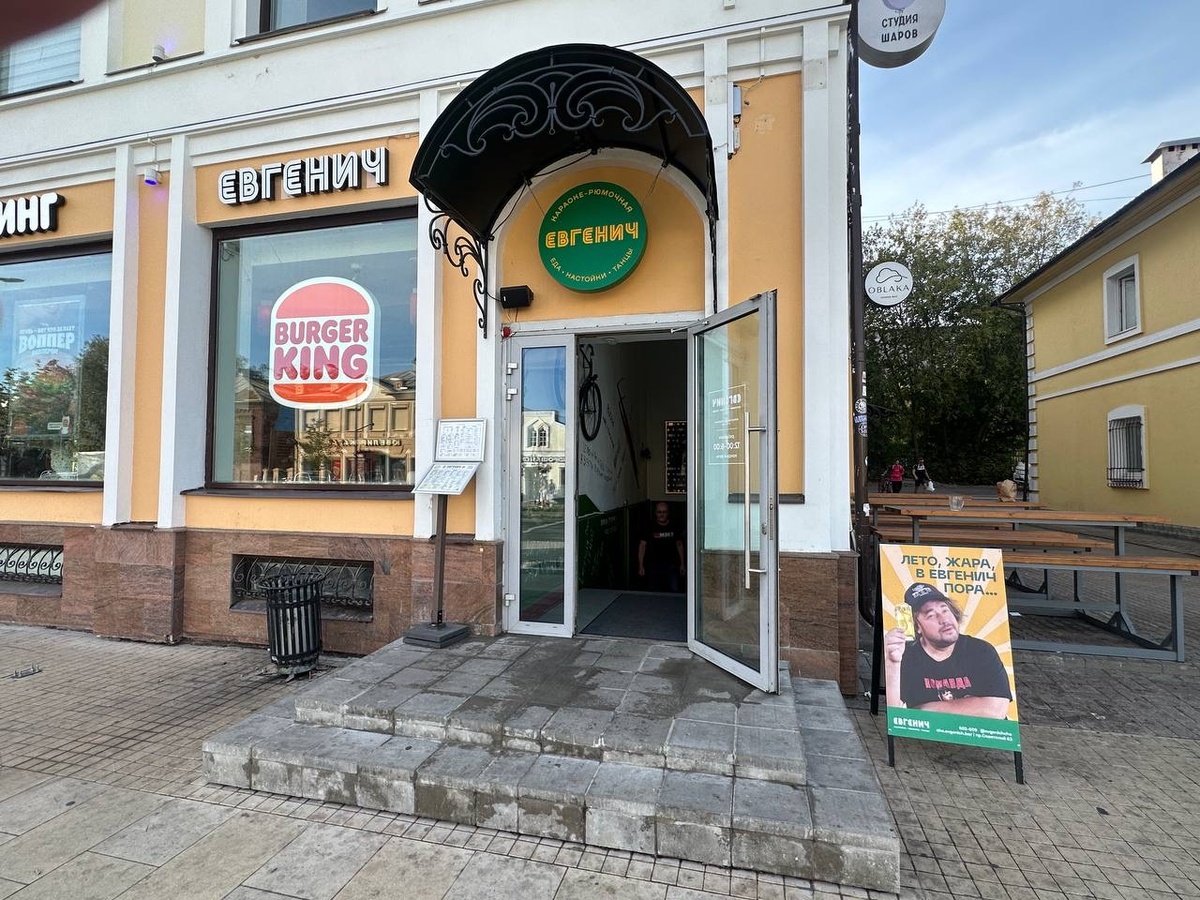 Ещё немного про Череповец . И ещё немного про группу «Руки Вверх» и ее солиста Сергея Жукова , который продолжает «стричь бабло» не только на музыкальном , но и на ресторанном поприще. Развив и раскрутив по всей России сеть танцевальных клубов «Руки Вверх», Сергей «ты целуй меня везде» Жуков принялся за популярный ныне формат рюмочных . Успешно запустив два года назад рюмочную «Евгенич» в Москве на Старом Арбате (про которую я конечно же Вам рассказывал в своем канале), певец решил, как я понимаю, вывести ее в тираж. Уж не знаю, будет ли это также сеть , как и «Руки Вверх», но как минимум ещё один «Евгенич» в России помимо московского появился и в качестве локации был выбран именно Череповец. Открылся бар на центральной и самой известной улице города по адресу: Советский пр-т, д.63. Вход прямо рядом с «Burger King» Для того, чтобы попасть в бар надо спуститься в подвал. Помещение у заведения при этом очень большое и просторное . (Хотя воздуха как мне показалось не хватает. Нем