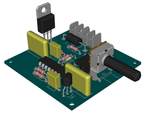 Когда мне для системы отопления потребовался мощный вентилятор, начинающий нагнетать тёплый воздух от калорифера в теплицу при понижении температуры ниже заданного порога (от 15 до 24 °С), то я решил приспособить для этого 12-вольтовый 150-ваттный электродвигатель с вентилятором от автомобиля, и разработал схему системы авторегулирования. В схеме использован сдвоенный интегральный таймер LM556CN. Но можно применить и два обычных таймера типа NE555. На одной части таймера DA3.1 собран задающий генератор частотой около 3 кГц, а на второй DA3.2 – широтно-импульсный модулятор (ШИМ), выход которого через мощный ключ на МОП-транзисторе VT1 (IRF540) управляет частотой вращения электродвигателя M1. В качестве датчика температуры в схеме использована специализированная ИМС LM34. Это прецизионный датчик температуры, откалиброванный в градусах Фаренгейта. Датчик имеет линейный выход 10,0 мВ/°F, рассчитан на полный диапазон от -50° до 300° F (-45,5…149°С) и работает с напряжением питания от 5 до
