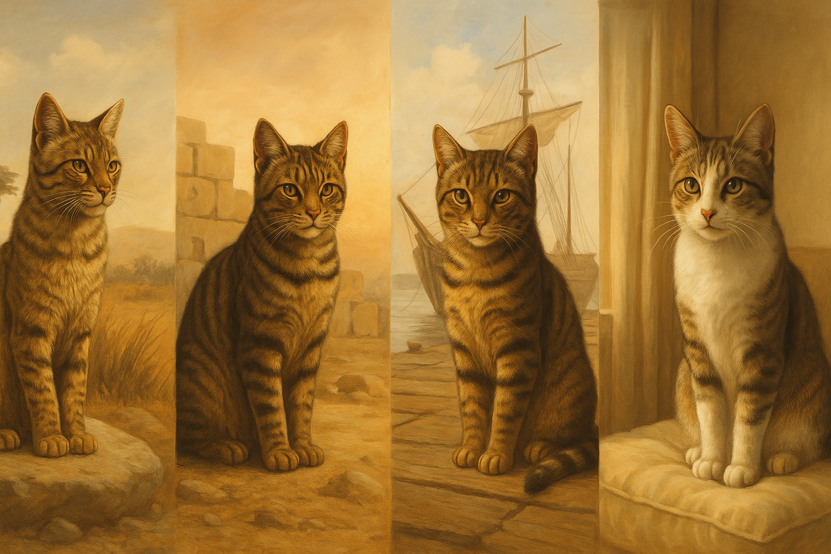 Сегодня кошка — привычный обитатель квартиры. Она дремлет у окна, мнет лапами подушку и требовательно мяукает перед миской. Но ещё несколько тысяч лет назад эти животные жили совсем иначе — в дикой природе, на границах человеческих поселений, но не рядом с людьми. Как же получилось, что они стали нашими спутниками? И действительно ли они выбрали нас — или это мы их приручили? 🐾 Начало: не приручение, а взаимовыгодное соседство Около 9 000 лет назад на Ближнем Востоке (в районе Плодородного полумесяца) началась история сближения кошек и людей. С развитием земледелия люди стали оседлыми, а запасы зерна привлекали грызунов. Где зерно — там мыши. А где мыши — там появляется дикая степная кошка (Felis lybica), предок всех современных домашних кошек. Это был не классический процесс одомашнивания, а скорее договор о взаимном ненападении: - человек не мешал кошке охотиться, - кошка помогала контролировать вредителей. Так началось их мирное сосуществование. 🏺 Первые в истории домашние кошки