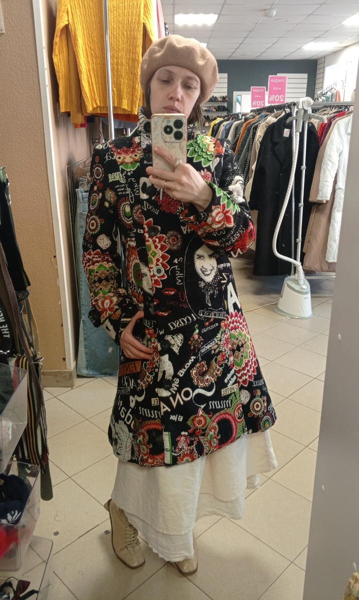 Всем добра. Хочу показать свои очередные примерки из секонда. Пока больше покупочек нет, так что из дома показывать нечего. Надеюсь, подборки одежды все-таки будут, потом. Ну и наконец-то яркое, как и обещала🙂 Пальто от десигуал. Оно настолько яркое, что я не рискнула его купить, хотя муж сказал вау😁 Но из такого яркого мне больше по духу Душегрея. Увидела цены на их сайте. 😵💫Смотрю и облизываюсь🤪 Мечтаю накопить на душегрею, но с моей зарплатой это проблематично. Полгода копить буду😁 Ладно, будем надеяться на хорошее. Пойду писать книгу к очередному конкурсу и кое что вышивать. Что - покажу потом🪡 Десигуаль верен себе. Все везде наляпано и при этом смотрится неплохо😁 Подкладка вырви глаз🙈 И курточку вам хотела показать, тоже яркую. А то все однотонное и однотонное. Не порядок, как мне тут писали в комментах😁 Прикольная такая, весенняя. Но тоже почему то мимо. Сама даже не знаю почему. Наверное, уверенность, что я еще найду что то похожее. Это не эксклюзив. А еще я поняла,