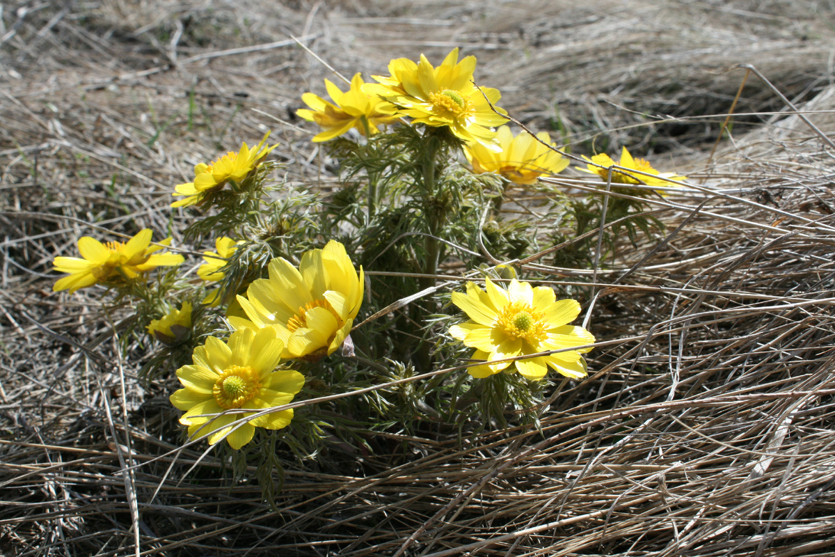 Помузицировал, как и собирался с самого начала весны, вместе с жаворонками. Мне подарили губную гармошку – и я нашел ей применение: вплетать легкие звуки дыхания в птичью трель. Над солнечными адонисами это хорошо получается: ритм и настроение подсказывает сама природа. Поиграл... Потом положил губную гармошку под адонисы. Вернулся, а на ней – ящерка. Ловит хвостом неверное тепло апреля. Металлический кожух инструмента нагрелся на солнце, и сам стал солнцеподобным. Фотографироваться ящерица не стала – ускользнула. Но лето длинное, и мы успеем сделать кадр, передающий музыкальность степи… Ковыль, желтый металл гармоники, а вокруг – все, кто любит негромкую, но пронзительную солнечную музыку… Думаю, таких немало наберется-налетит-наползет в какой-нибудь праздный летний вечер. Кстати, провода ЛЭП уже репетируют – в арфовом диапазоне.