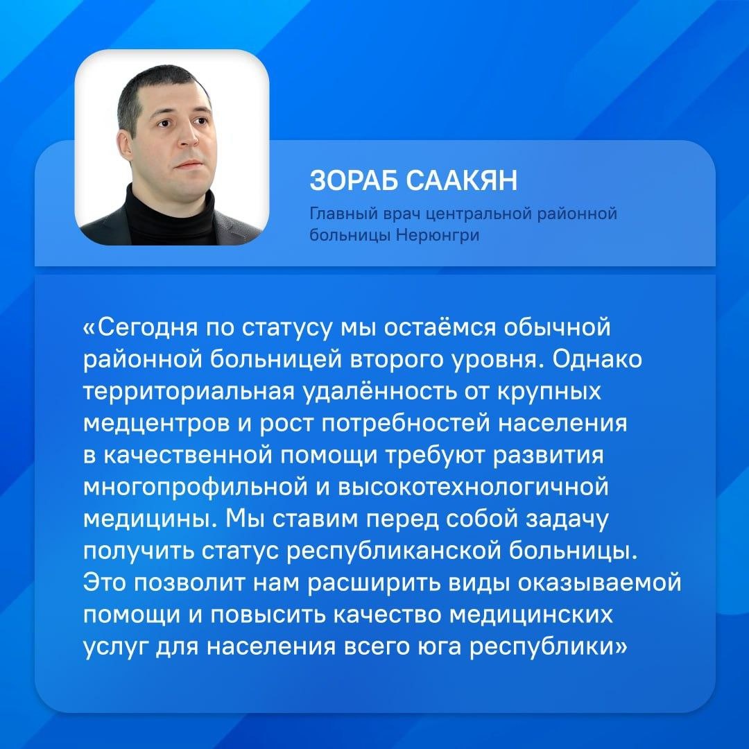 Обновление в рамках мастер-плана поможет больнице Нерюнгри получить статус республиканской О планах повысить качество медпомощи рассказал главный врач ЦРБ Нерюнгринского района Зораб Саакян. Сейчас в центральной районной больнице продолжается масштабная реконструкция лечебного блока «А», акушерского корпуса и кожно-венерологичесого диспансера. Уже обновлены женская консультация и блок «Б». Ремонт и переоборудование проводятся благодаря госпрограмме «Единая субсидия». Всего до 2030 года планируется модернизировать 14 объектов здравоохранения в Нерюнгринском районе.