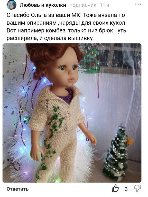 Комбинезон от Людмилы. Вы только прочитайте комментарий 😍 Людмила не только связала на стандартный молд куклы Паола Рейна, но и для маленькой куклы тоже. Украсила свои работы по летнему!