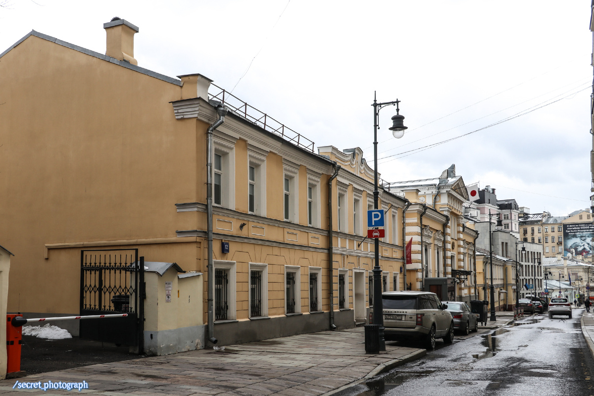 Рассказывая про Театр имени Маяковского, я упомянул одного из владельцев участка, на котором он был построен, купца Григория Никитича Зарубина. Тот дом он купил, чтобы сдавать в аренду театральной конторе, но и сам жил по соседству, выстроив для себя усадьбу в Калашном переулке. Конечно, первоначально она выглядела скромнее и меньше: классический главный дом и пара флигелей. Усадьба не раз меняла владельцев, одним из которых был потомственный почетный гражданин, купец Семен Семенович Лепешкин, брат одного из хозяев усадьбы в Малом Кисловском с памятной винтовой чугунной лестницей. Приближаться к своему нынешнему виду владение начало в 1884 году, когда его приобрела Анна Ивановна Сергеева, жена московского купца-чаеторговца. Она… А мы помним, что как раз в это время он работал по соседству, оформляя фасад усадебного дома княгини Шаховской-Глебовой-Стрешневой. В результате владение приобрело облик в неогреческом стиле. Свидетельствуют, что Каминский планировал устроить еще более величест